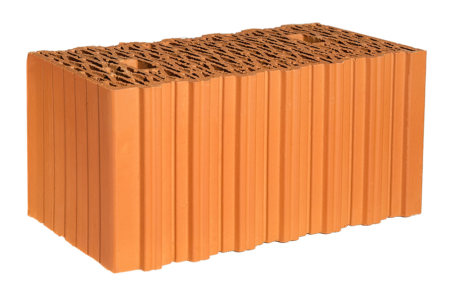 Имеет лучший показатель по теплопроводности в условиях эксплуатации в сравнении с альтернативными крупноформатными поризованными камнями. В качестве доборного элемента применяется камень 10,7NF. Экономические преимущества по сравнению с камнем 14,3NF – снижение толщины стены, снижение веса конструкции, сокращение расхода раствора