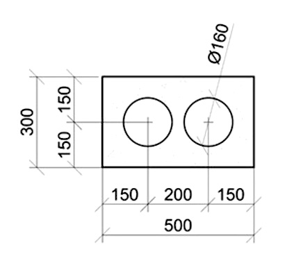 О-блок газосиликатный Д500 500х250х300 2d160 ISTKULT