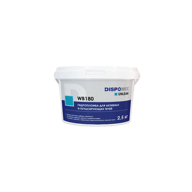 Предназначена для ликвидации активных протечек воды во внутренних и внешних стенах, трещинах, швах в бетонных и кирпичных конструкциях. Обладает быстрым временем схватывания и набором прочности, останавливает протечки через 3 минуты. Устойчива к прямому и обратному гидростатическому давлению воды.