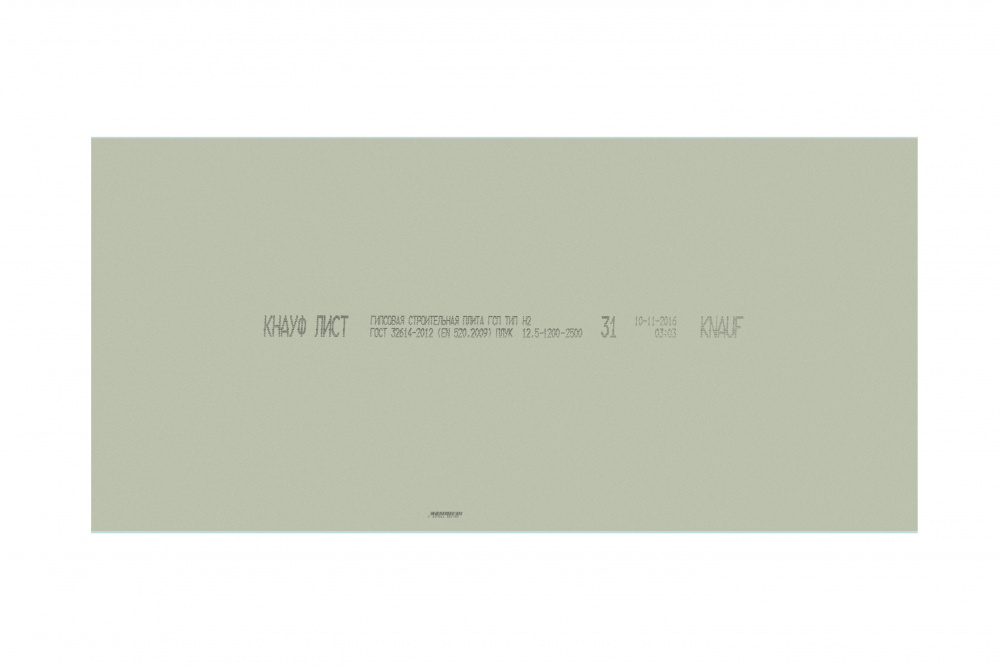 Другим важнейшим компонентом Кнауф-листа влагостойкого является облицовочный картон, сцепление которого с сердечником обеспечивается за счет применения клеящих добавок. Картон выполняет роль, как армирующего каркаса, так и прекрасной основы для нанесения любого отделочного материала (штукатурка, обои, краска, керамическая плитка и др.)