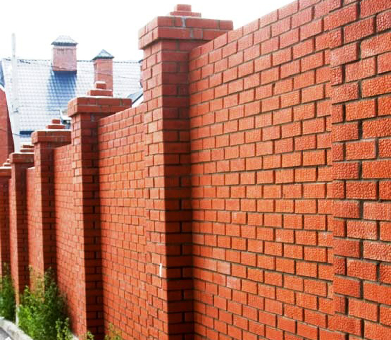 очень красивая фактурная поверхность у этого кирпича. Сделал столбики для забора.
