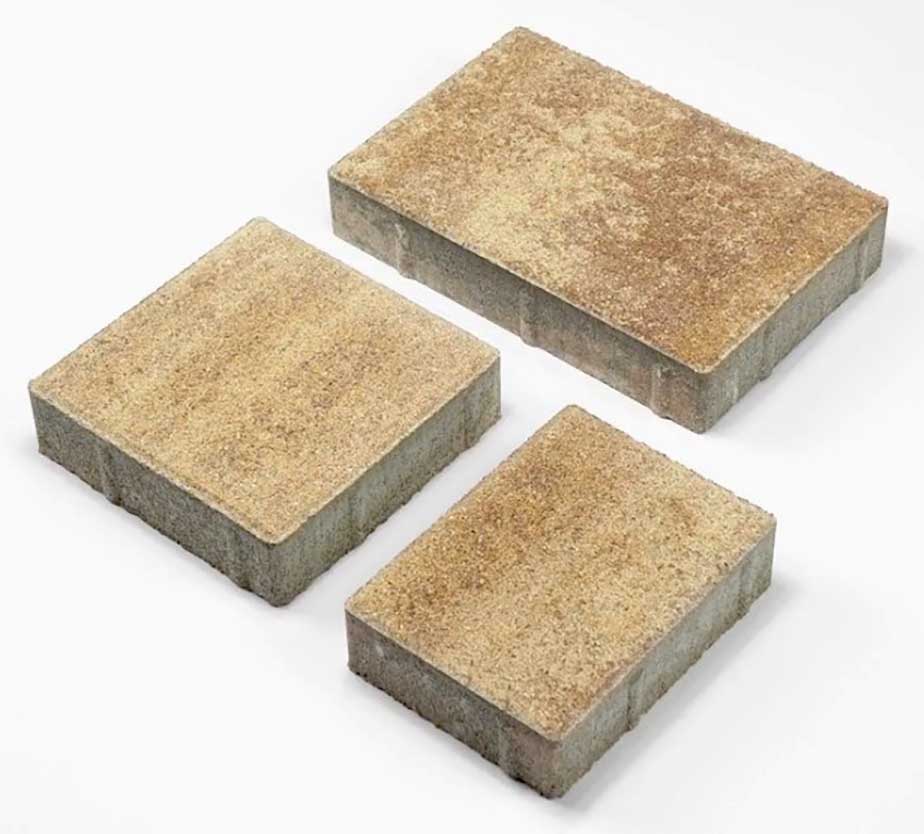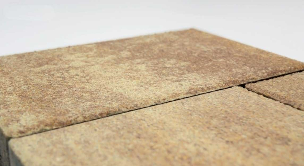 Тротуарная плитка имеет гладкую поверхность и наборную форму, что позволяет создавать разнообразные дизайнерские решения при укладке. Вес одной плитки - 138 кг, толщина - 40 мм, а прокрас выполнен лишь на верхнем слое, что придает поверхности исключительный эстетический вид.