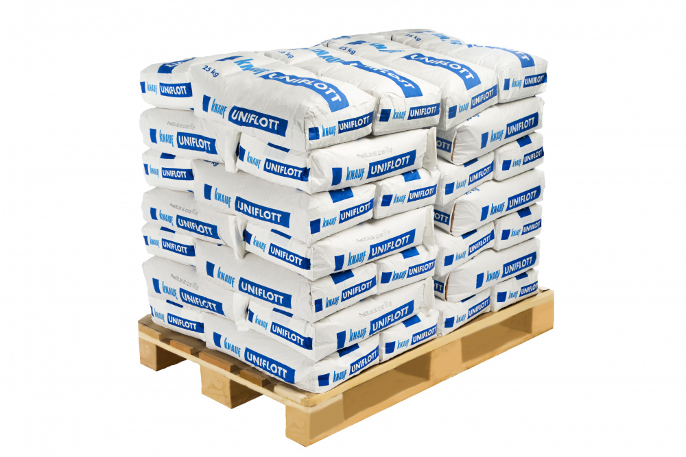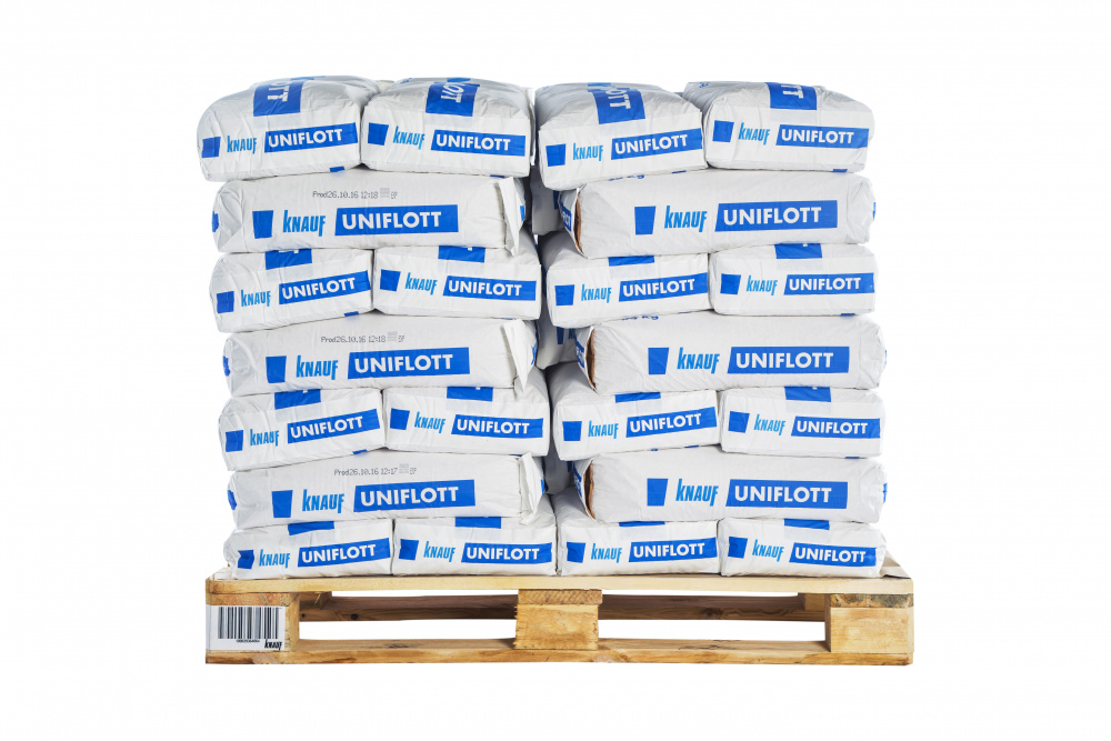 КНАУФ-Унифлот – сухая шпаклевочная смесь для внутреннего применения на основе высокопрочного гипсового вяжущего с полимерными добавками. Предназначена для заделки стыков КНАУФ-листов (ГКЛ) с полукруглой кромкой (ПЛУК) без использования армирующей ленты, стыков листов ГКЛ с другими видами кромок.