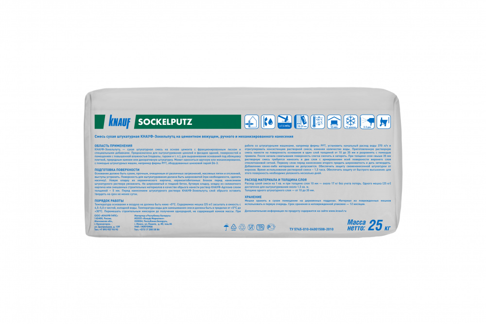 Применяется для оштукатуривания цоколей, а также обычных и твердых оснований в помещениях с повышенной влажностью (подвалы, прачечные, производственные помещения и т.п.) под последующее нанесение декоративных покрытий (например, декоративной штукатурки КНАУФ-Диамант, краски, облицовочной плитки, природного камня и т.п.).